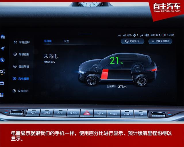 电量显示就跟我们的手机一样,使用百分比进行显示,预计续航里程也得以显示。
