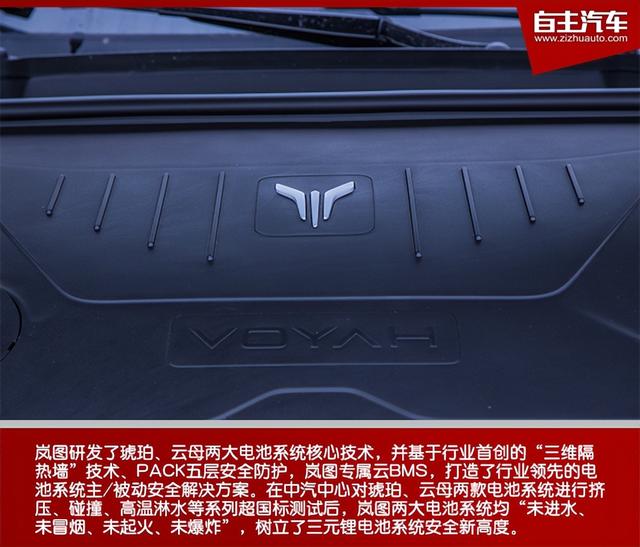 岚图研发了琥珀、云母两大电池系统核心技术,并基于行业首创的“三维隔热墙”技术、PACK五层安全防护,岚图专属云BMS,打造了行业领先的电池系统主/被动安全解决方案。在中汽中心对琥珀、云母两款电池系统进行挤压、碰撞、高温淋水等系列超国标测试后,岚图两大电池系统均“未进水、未冒烟、未起火、未爆炸”,树立了三元锂电池系统安全新高度。