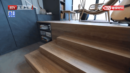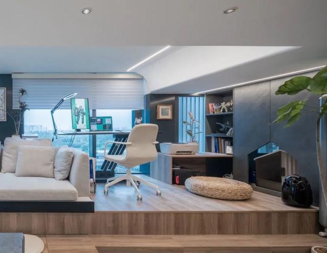 原来的L型平台,不能拆,被改造成了工作区,台阶里做了收纳用的抽屉。