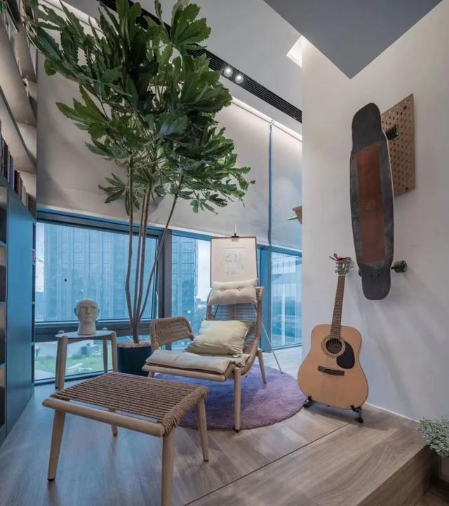 柱子后面变成了休闲区。坐在这里晒着太阳吹着风,一边看书一边欣赏窗外的美景,很是享受。