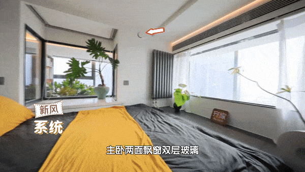 父母的房间采光很好,床就在大玻璃窗旁边,凸窗也可以作为非常好的观景台。