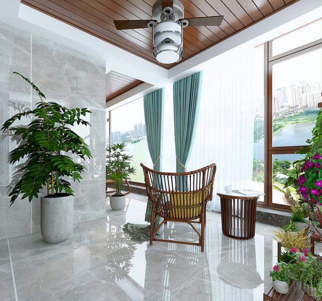 休闲阳台很大,分为两个区域。一个在客厅旁边,有休闲桌椅。可以坐在这里聊天,欣赏屋外的风景,增加与客厅的互动。另一个区域比较休闲,有躺椅,躺在这里喝咖啡,欣赏屋外的风景。是不是很美?