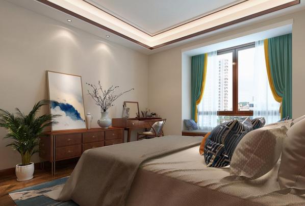 主卧室里没有电视机。毕竟躺在床上看电视不是一个好习惯。卧室无主灯的设计,看起来更干净。主卧把原来的飘窗打了,做了飘窗柜的设计,可以用来休闲和收纳,一些小东西可以放在里面。