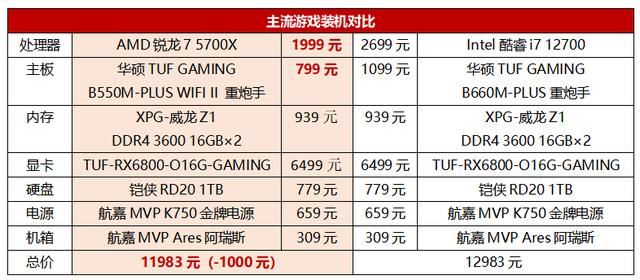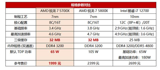 平台便宜千元 游戏性能正面刚!AMD两千元新甜点锐龙7 5700X PK 酷睿i7 12700