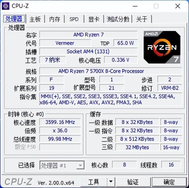 CPU-Z 2.0版已经可以正确识别锐龙7 5700X