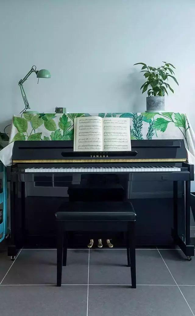 有爱好的人,一定会把生活经营得特别有意思吧!会弹钢琴,这是多少人梦寐以求的呀。台灯,绿植,遮尘布,都是绿意浓浓的样子。