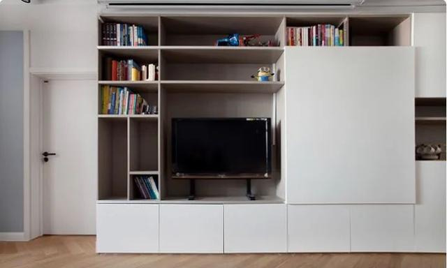 单独给电视做电视柜有点奢侈。为什么不把电视柜和储物柜合二为一呢?