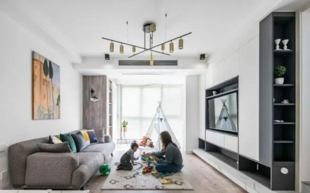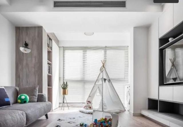 客厅没有茶几,中间区域留给宝宝玩耍。