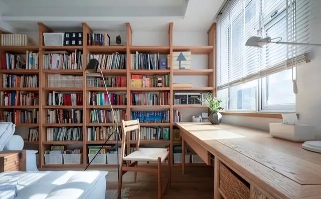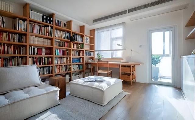 原来的中央区域换成了两张棉麻沙发,方便躺着或坐着看书。拿掉茶几,空间变得更加开阔。