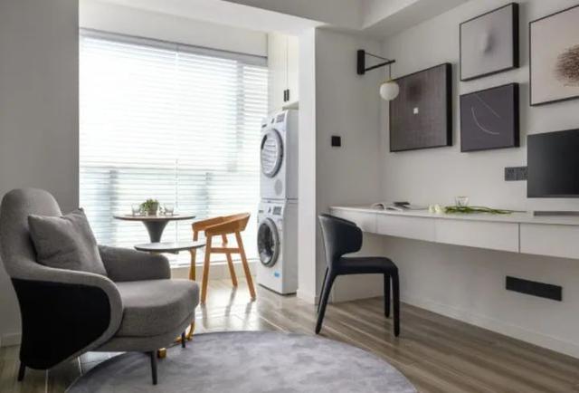 只有30㎡,直接把客厅变成书房,满足办公需求,但还是留了一张单人沙发,平时可以放松一下。