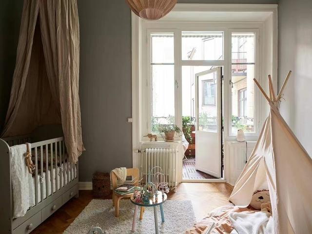 儿童房就像宜家的样板房,一切都是为孩子量身定制的。适合孩子的小桌椅,还有大地色的床帘、帐篷等。让孩子在温和的环境中享受舒适的睡眠。