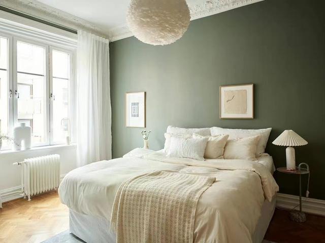 如果你想在老房子里迎来一个新房间,改变你家墙壁的颜色是最直观的,你不会记得以前的房间粉刷后是什么样子。在与客厅相连的主卧空间,大面积的绿色带来清新自然的轻盈感,网上名人羽毛灯的加入更是魅力四射,直击少女心。