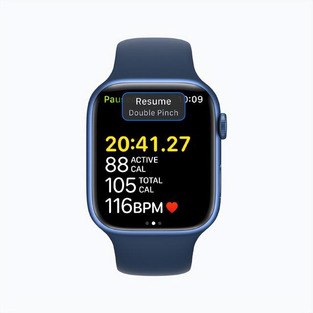 此外,用户还可以使用简单的手势进一步控制 Apple Watch。通过 Apple Watch 上新的快速操作,用户可通过“两次捏合”手势接听或挂断电话、忽略通知、拍摄照片、在播放中 app 里播放或暂停媒体,以及开始、暂停或继续体能训练。这项功能基于 Apple Watch 辅助触控中使用的创新技术,让上肢不便的用户能以不同方式控制 Apple Watch,如捏合或握拳,而不必轻点显示屏。