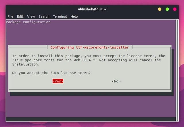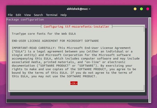 由于这个基础软件包包含类似微软字库那样用不到的一些多余的软件,你必须得接受最终用户许可协议(EULA)才行。