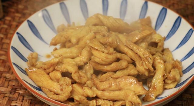 第六步、锅中烧油,油热放入鸡肉翻炒,大火把鸡肉炒到变色就可以了,鸡胸肉很好熟,时间不要过长,炒好后先盛出来备用。