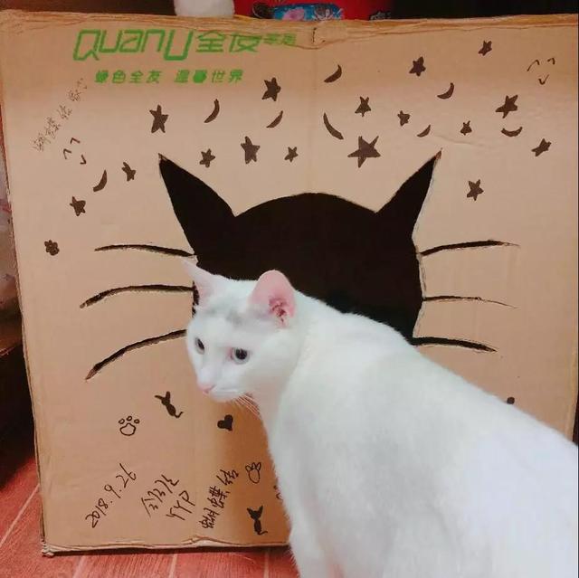 我在微博上看到猫咪都喜欢钻洞,然后还看到有人直接用塑料盒子改装猫窝,猫咪很喜欢,于是,我就给“蝴蝶结”做了牠的第一个小窝。
