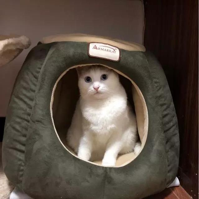 牠的第三个小窝是在我同事的吐槽下决定买了个比较好的、暖和的。
