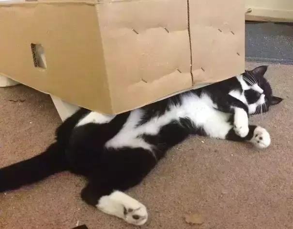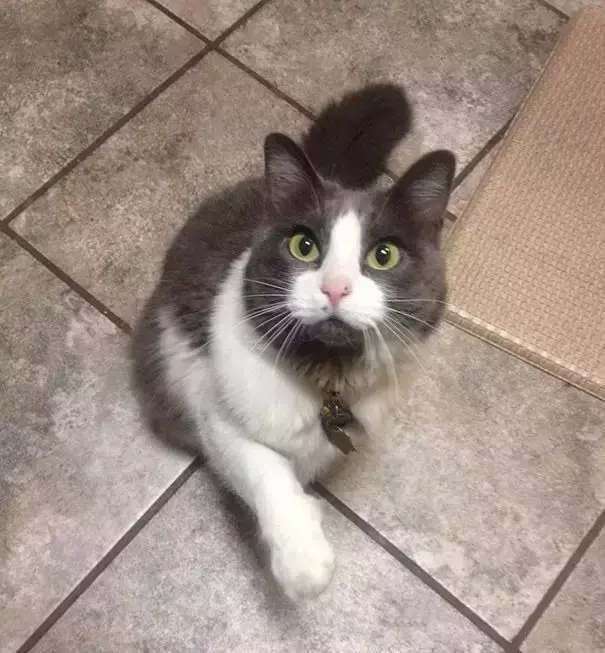 这只像戴着黑色帽子的猫咪疑似因为爪子无法收回以及外貌等因素而遭到弃养,还好遇到新的主人疼爱,过得十分幸福。