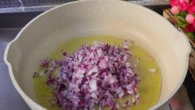 第三步、锅里倒入食用油,油热后放入洋葱煸炒,把洋葱炒软,炒出香味就可以了。炒好后把洋葱盛出来备用。