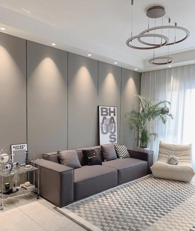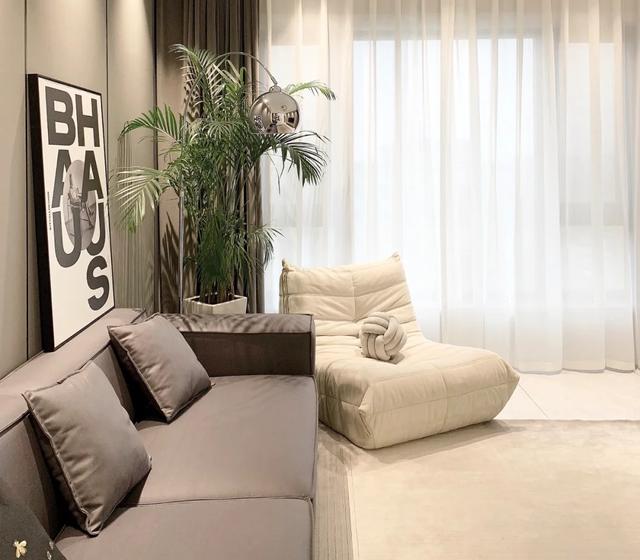 沙发的右角摆放绿植,为房间增添绿意和活力。搭配毛毛虫沙发,慵懒又贴皮。当你坐在上面的时候,整个人都被包裹在沙发里,你感觉到满满的安全感。很多褶皱形成的慵懒光,光是看着就让人觉得很放松。