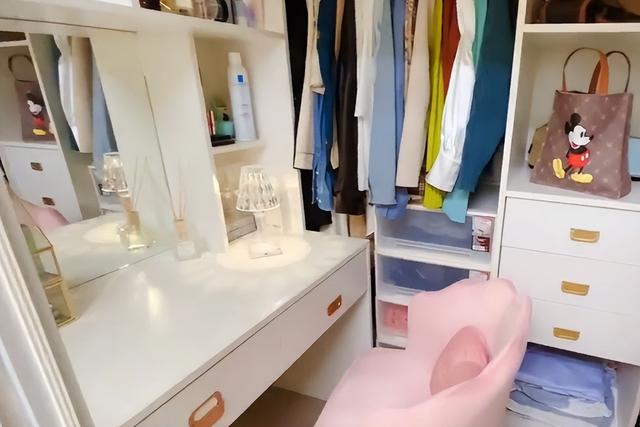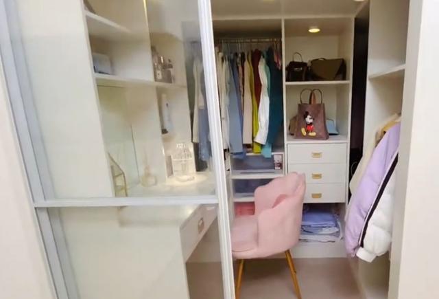 床下做了一个小衣帽间和更衣室,整体既实用又温馨。大大小小各种柜子,完全满足女生的衣物收纳需求。