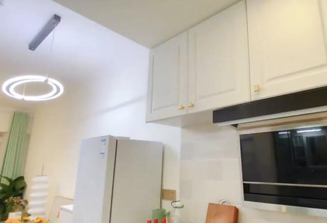 厨房的白色橱柜和吊柜也充分满足了厨房用品的收纳需求。