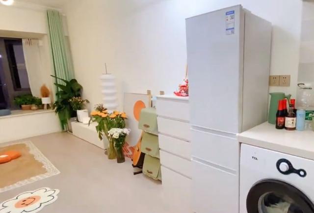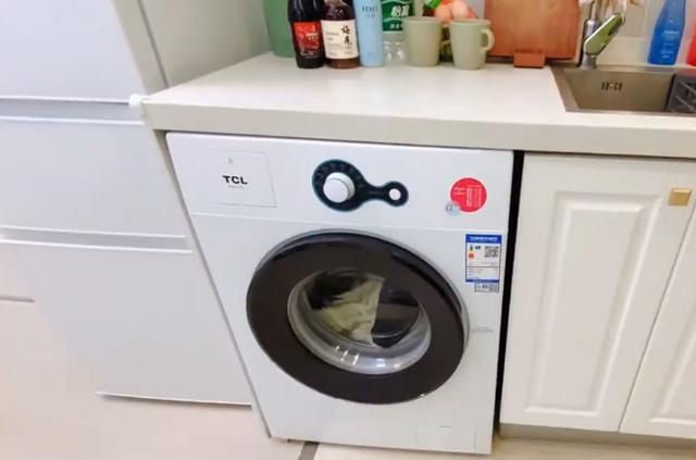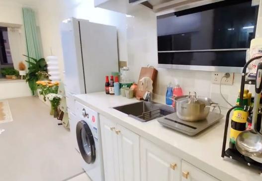 洗衣机采用嵌入式设计,嵌在柜子里。因为没有阳台晾晒,洗衣机选择洗烘一体机,不占空间,方便日常洗衣。