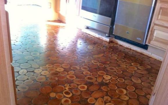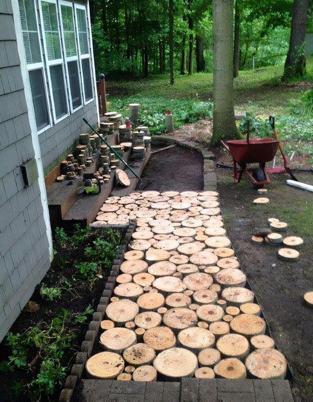 如果不做背景墙,木片还能做什么?要是你老家有院子,可以试试修一条木头小路,一定会成为一道美丽的风景。如果你家也想试试,木头在室内,防水不可或缺。