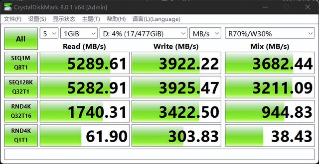 标称速度:5300MB/s(读)、4000MB/s(写)