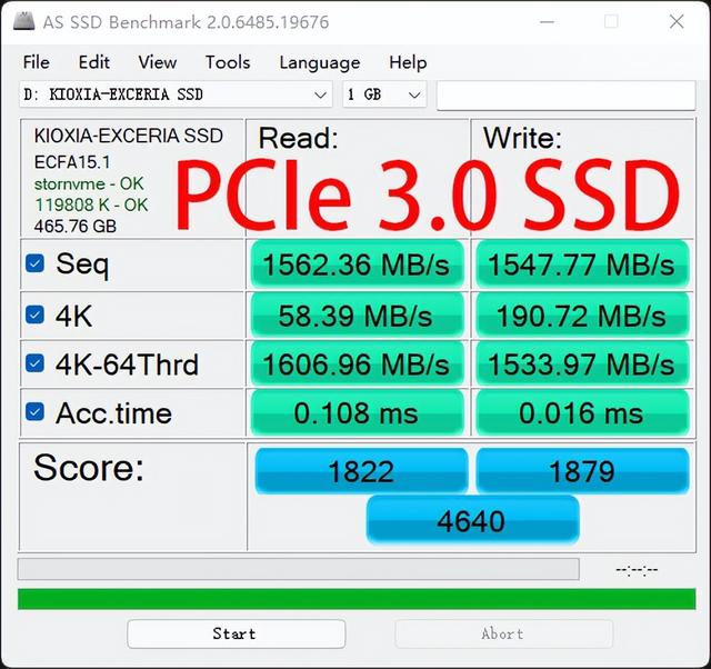 AS SSD Benchmark测试中,雷克沙Lexar NM760连续读取速度达到4112.92MB/s,连续写入速度达到2979.76MB/s。Lexar NM760相比PCIe 3.0 SSD在顺序读写方面优势明显,有近乎翻倍的读写速度,同时访问延迟也有明显的下降,AS SSD总分从4640上升到5286。不过4KQD1、4KQD64随机读写的成绩比较一般,但随机写入性能依然强于PCIe 3.0 SSD。