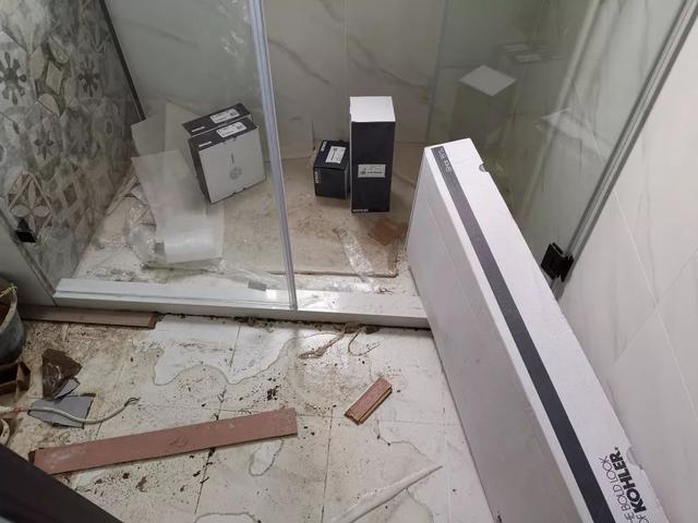 卫浴安装发生了一件小插曲,因为定制柜是提前全部安装完毕的,卫浴安装师傅在安装主卫和阳台水龙头时在没有和我们沟通的前提下肆意破坏我们的定制柜面板,之后更是态度恶劣,可想而知我们当时的心情是差到极点了。