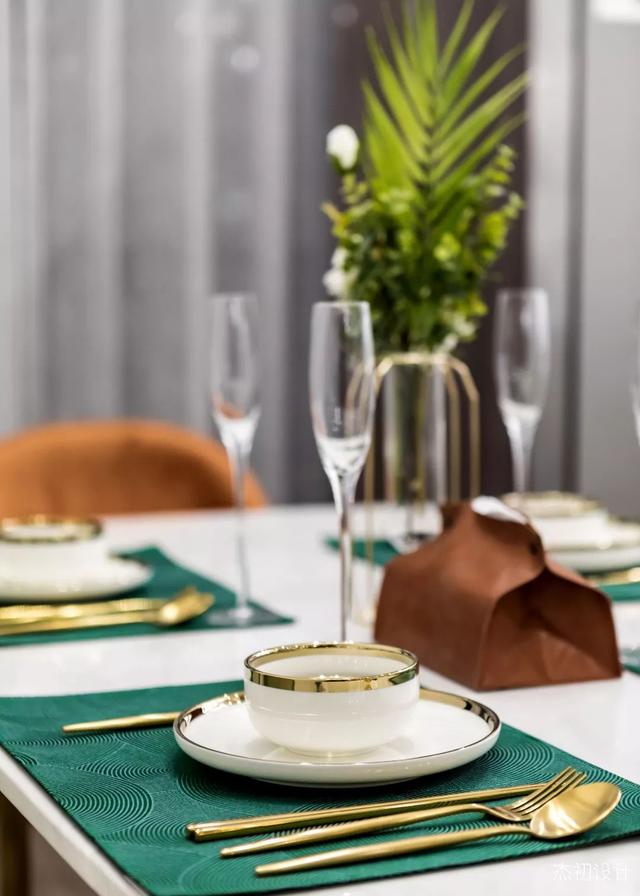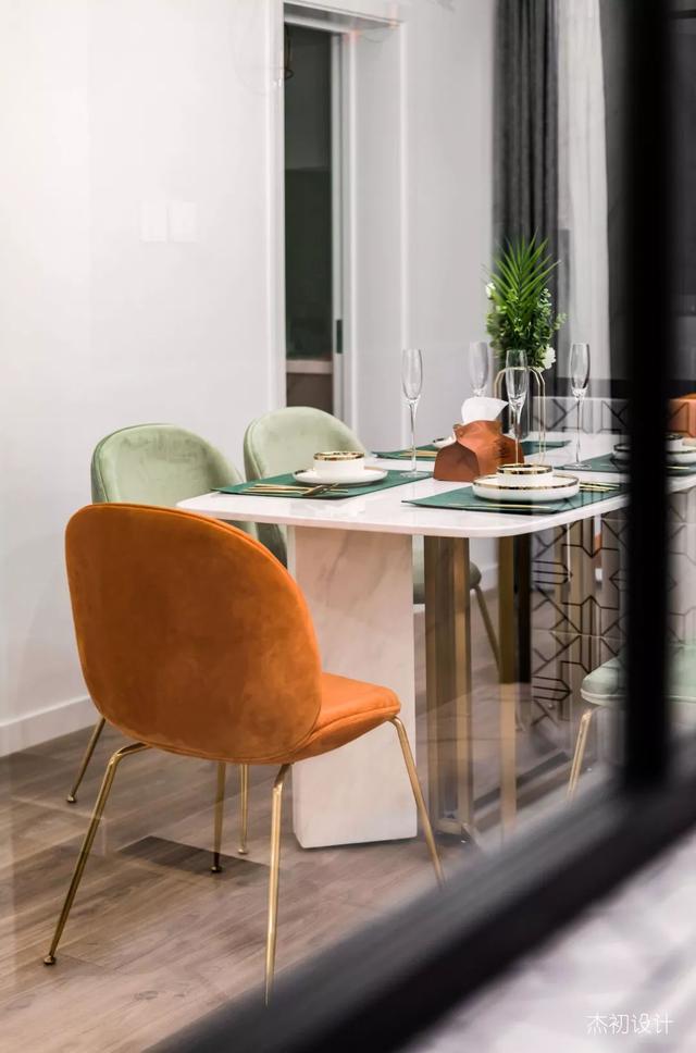 即便从隔断望出去,家里的每一处也皆是风景。石材、丝绒和金属的元素,让这个家变得精致富有高级感。