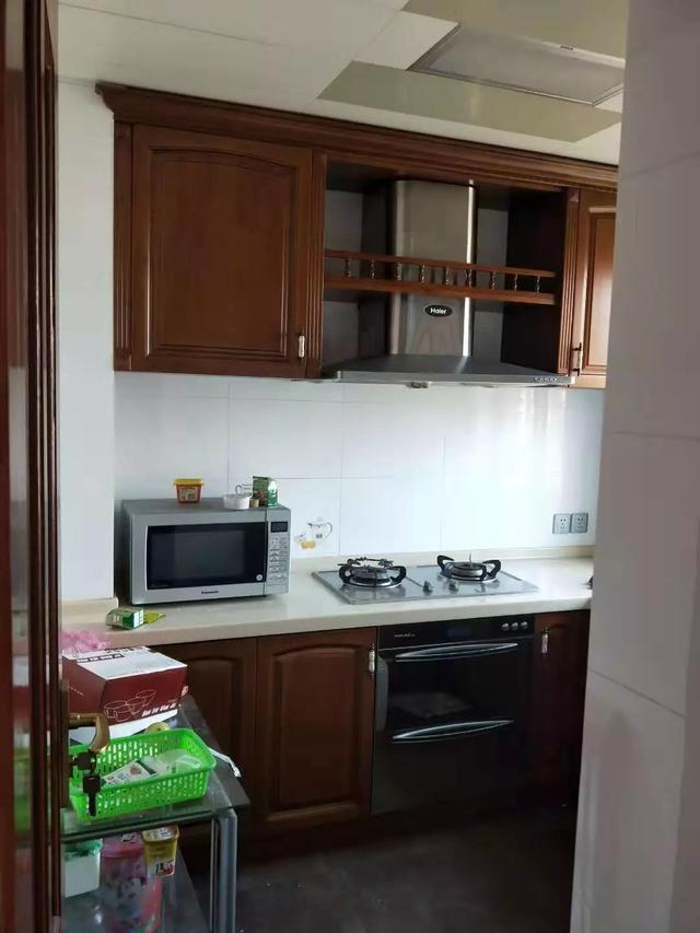 改造前的厨房,就是一字型的,能放置的东西有限,动线也不合理。橱柜是老气的深棕色......要知道我心水的可是雾霾蓝呀!