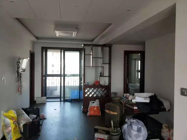 原来的客厅,进门处没有做玄关也没有收纳鞋子衣物的地方。为了区别餐厅和客厅,还做了一个隔断柜。但是这个隔断柜也是深色的,一放东西就阻隔了部分的采光,显得空间不大气。