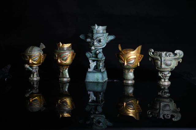 三星堆福佑青铜像系列潮玩样品 图源:新华社 王曦/摄