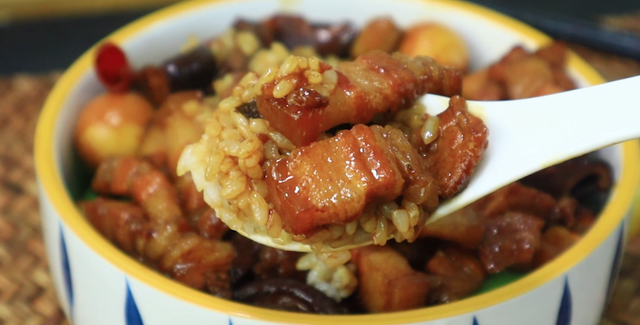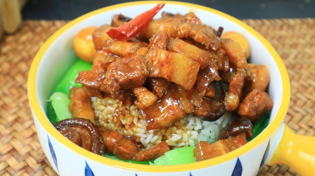 这样一道简单的卤肉饭就做好了,浇上肉淋上汤汁,就这么一拌,看起来特别的有食欲,保证家里人都爱吃。