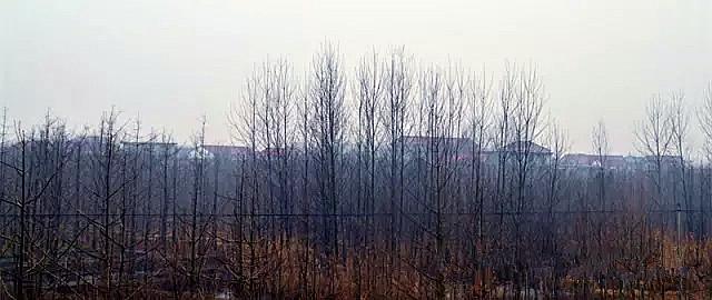(从沂河西堤西瞰黄庙村)