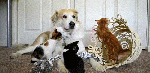 都说猫狗是天敌,一见面就打架,打起来可怎么办才好啊!