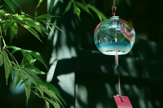 风铃摇摆的幅度越来越小,铃声也逐渐停止了。女孩情不自禁地又抬手触动了它,风铃再次发出动听的声音。
