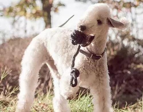 长得像小羊一样的贝灵顿梗,身上的毛发也是毛茸茸的感觉,但是它们极少掉毛,想要不掉毛的狗狗又不想要小体型的,可以选它。