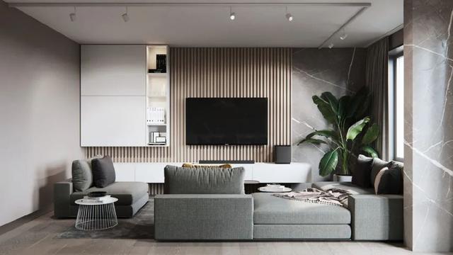 3.沙发高度和电视摆放或壁挂高度要科学装修。沙发的位置确定了,电视的位置也就可以轻松确定了。壁挂电视的高度可以根据沙发的高度来决定,减少看电影时的身体疲劳。