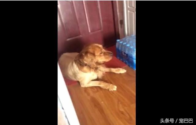 平常狗狗被主人骗多了,就不想再听信主人的话了,像这只金毛狗狗,主人惹它生气后,就坐在门边不远那。