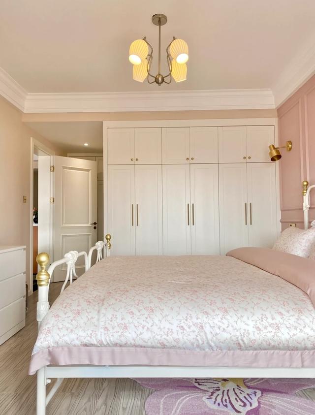 整个卧室的配色很温柔,粉色和白色奶咖色的搭配让你乐此不疲。卧室的每个角落似乎都在诉说着浪漫复古的陶瓷灯,四头卧室恰到好处。特别喜欢它的陶瓷灯罩,很有质感。