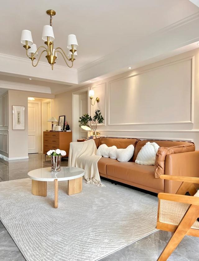 客厅用的是奶咖色的乳胶漆。颜色是立邦的奶咖色,色号:NN0020-4,师傅刷漆的时候进行了掺水处理。墙面颜色统一,视觉上更有拉伸感,不会有压抑感。后期的软装搭配也有更大的发挥空间~