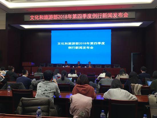 人民网北京12月26日电(宋子节)今天下午,文化和旅游部召开2018年第四季度例行新闻发布会,相关负责人就今年第四季度文化和旅游工作有关情况进行具体介绍。2018年,艺术创作呈现出重点加强现实题材创作、实施西部及少数民族地区艺术创作提升计划等六大特点;旅游方面在完善旅游精品景区体系、重点打造精品旅游带、加强智慧旅游供给等七个方面取得显著成果。会议由文化和旅游部办公厅副主任喻剑南主持。