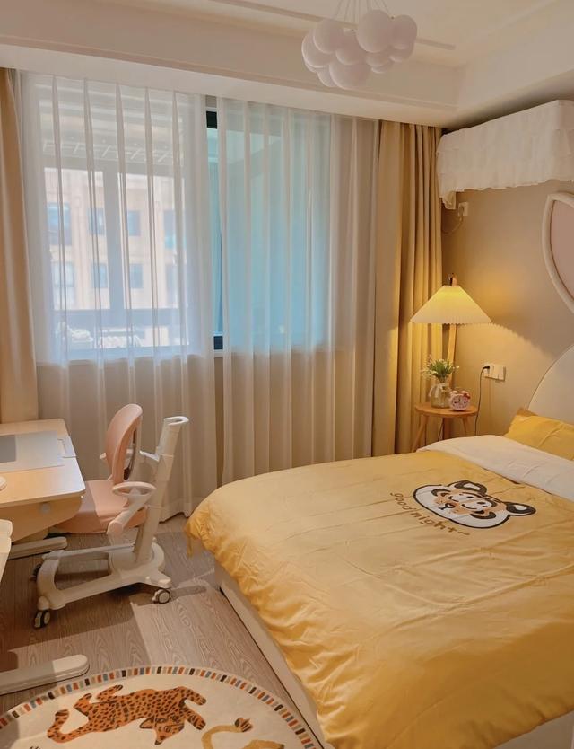 1.5米的兔子床满足了孩子们的小愿望。今年是虎年。从胖虎的四件套开始,手感细腻柔滑,但是很可爱,非常亲肤。吊灯是三色光源的月亮灯,够亮,够梦幻,够漂亮。