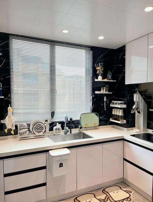 哈哈,太喜欢了。我没有在餐厅顶部做餐具柜。而是在厨房门处做了一个集成橱柜。台面上可以放很多东西,下面的储物柜空间也很大。因为家里厨房空间不大,所以做了一个开放式的厨房,我真的很喜欢。
