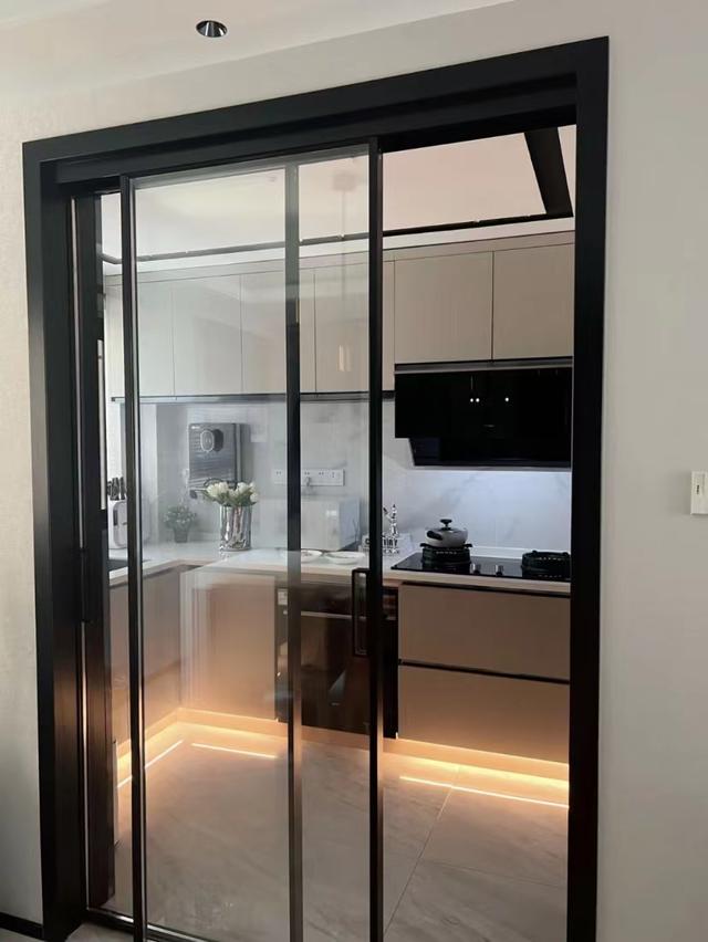 吊柜平开门,地面没有轨道,对小孩和老人很友好,也不会藏污纳垢。