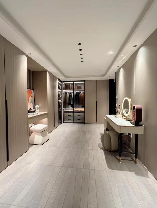放弃一个房间换来的衣帽间被做成了满满一墙的柜子,四季的衣服包括被褥都可以放下。哪个女生能拒绝这样的衣帽间?
