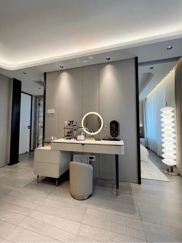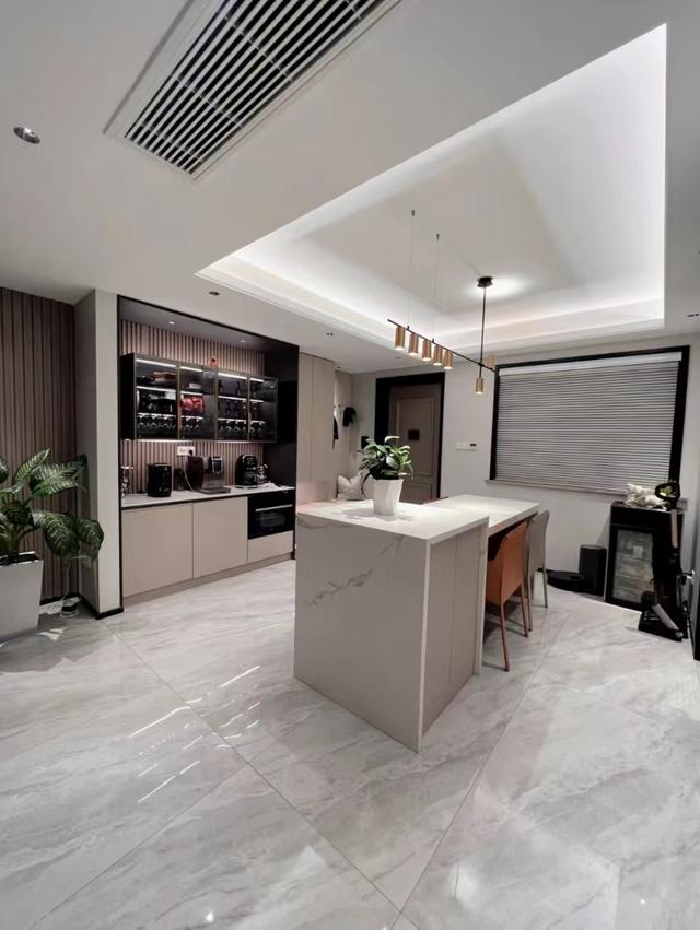 硬装的意义并不是很多装修材料的无脑堆积,而是在注重设计的同时,尽可能的利用材料增加空间感。比如地面的瓷砖就不是普通的800*800规格,而是更大的规格的大板通铺,让地砖在大的空间里看起来也很大气。